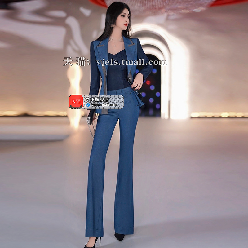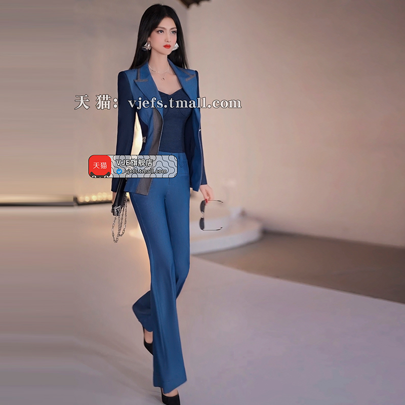 女秋季 开叉微喇裤 2025新款 高级感垂感黑色西装 高腰显瘦修身 喇叭裤
