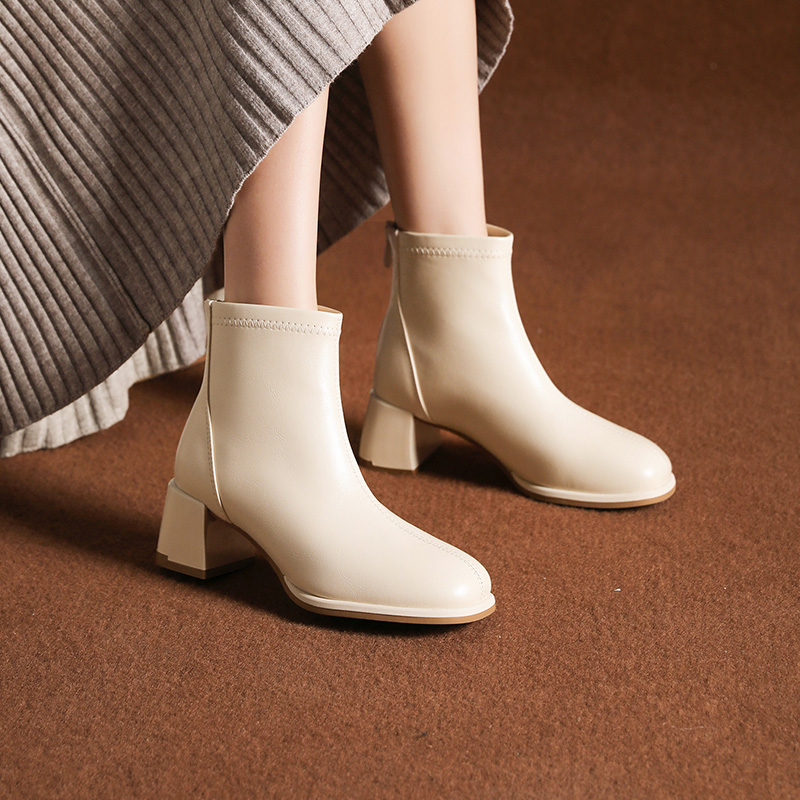 1009 优雅短毛绒后拉链粗跟高跟鞋 大东粗跟短靴女鞋 冬季