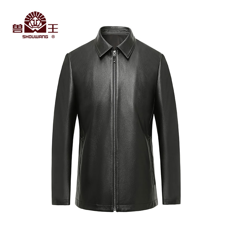 兽王秋冬新款 男头层牛皮真皮皮衣翻领商务休闲皮夹克羽绒中年外套