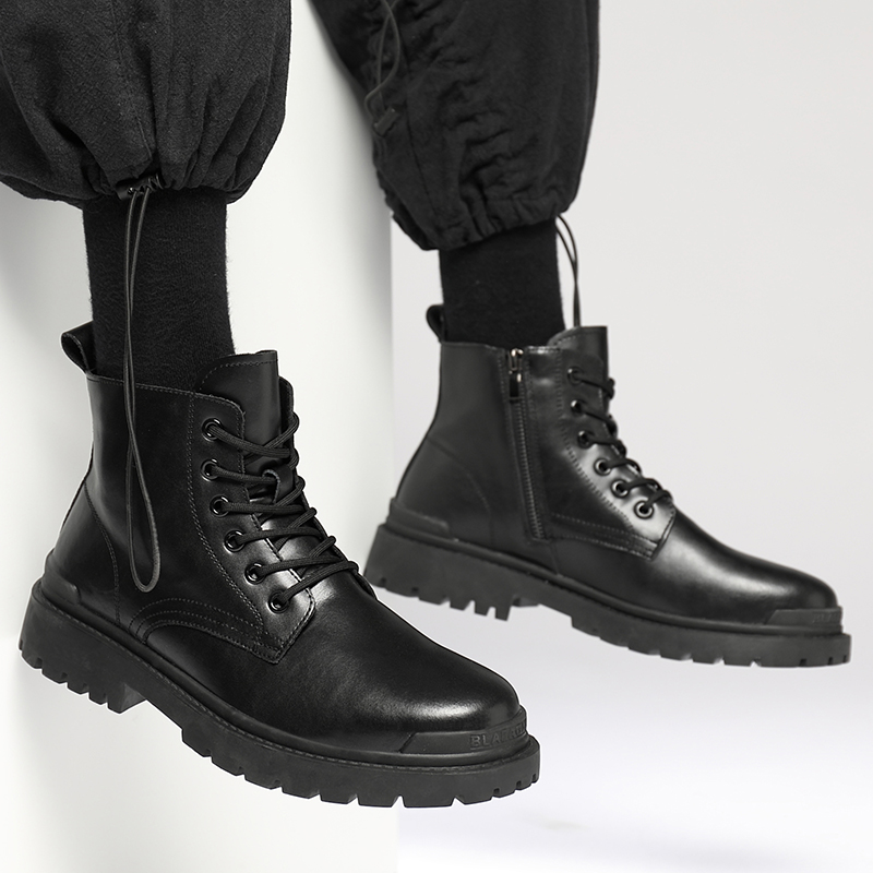 棉鞋 黑色马丁靴男士 秋冬高帮英伦防水皮靴休闲骑行靴保暖加绒工装