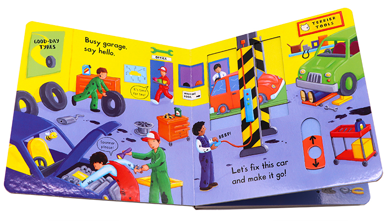 Garage 推拉滑动机关操作纸板书 忙碌 绘本 儿童英语启蒙低幼趣味游戏玩具书早教亲子互动Campbell 修车厂英文原版 Busy系列Busy