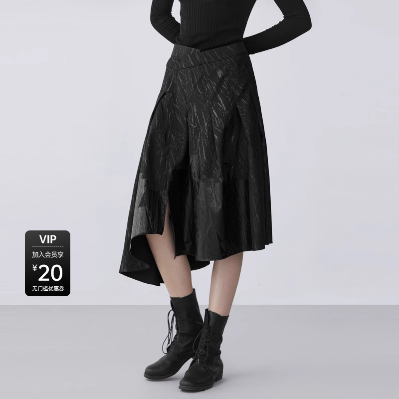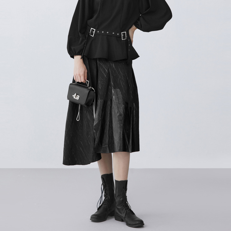 RUISHI芮时欧若风丁达尔裙仿真丝光泽感压褶半身裙女春秋 现货