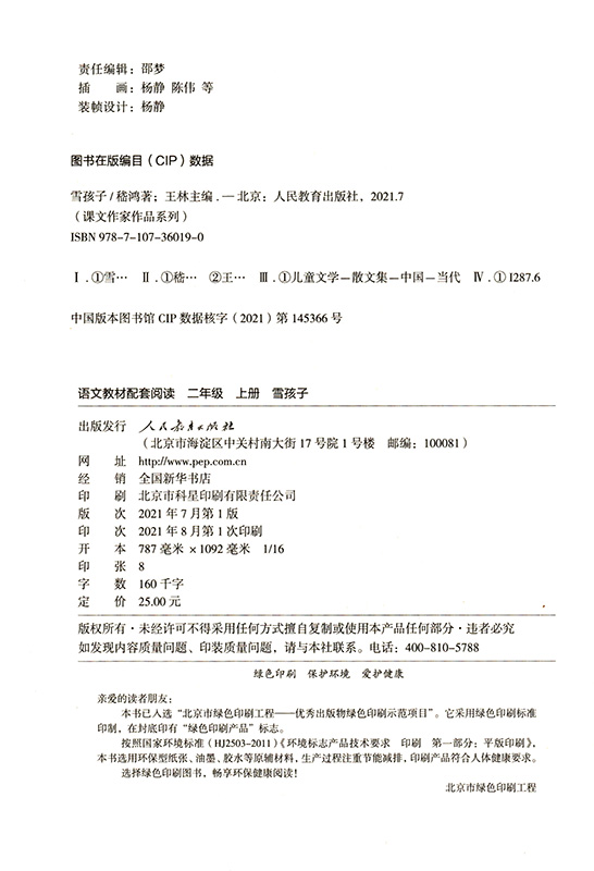 名家经典 统编教材配套 阅读 课文作家面对面 王林主编 课文作家作品系列二年级上册 稽鸿著 雪孩子