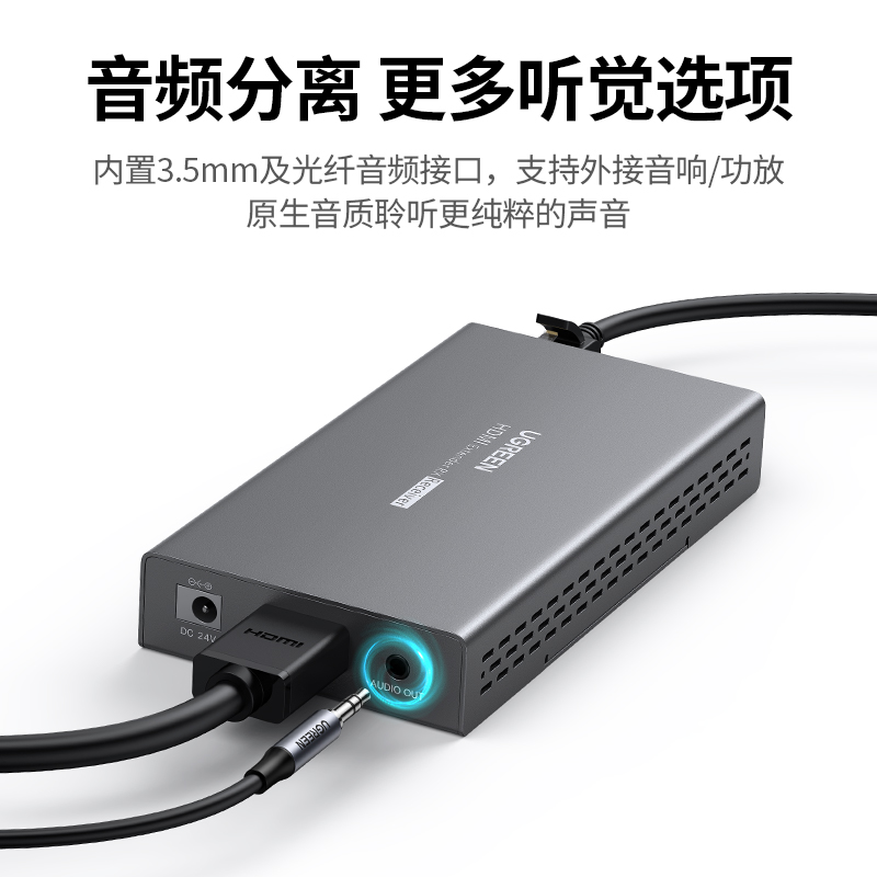 绿联 hdmi2.0延长器单网络网线传输120米支持EDID转网口hdbaset传输4K高清视频rj45转换信号增强放大器
