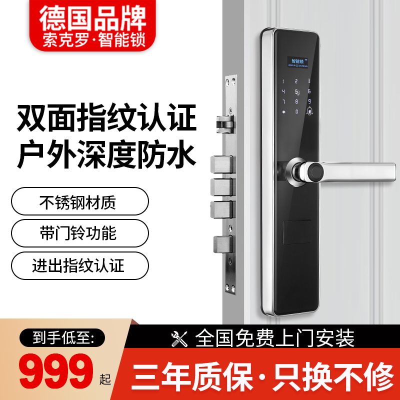 德国索克罗户外防水双面指纹锁家用防盗门密码 锁别墅庭院门智能锁