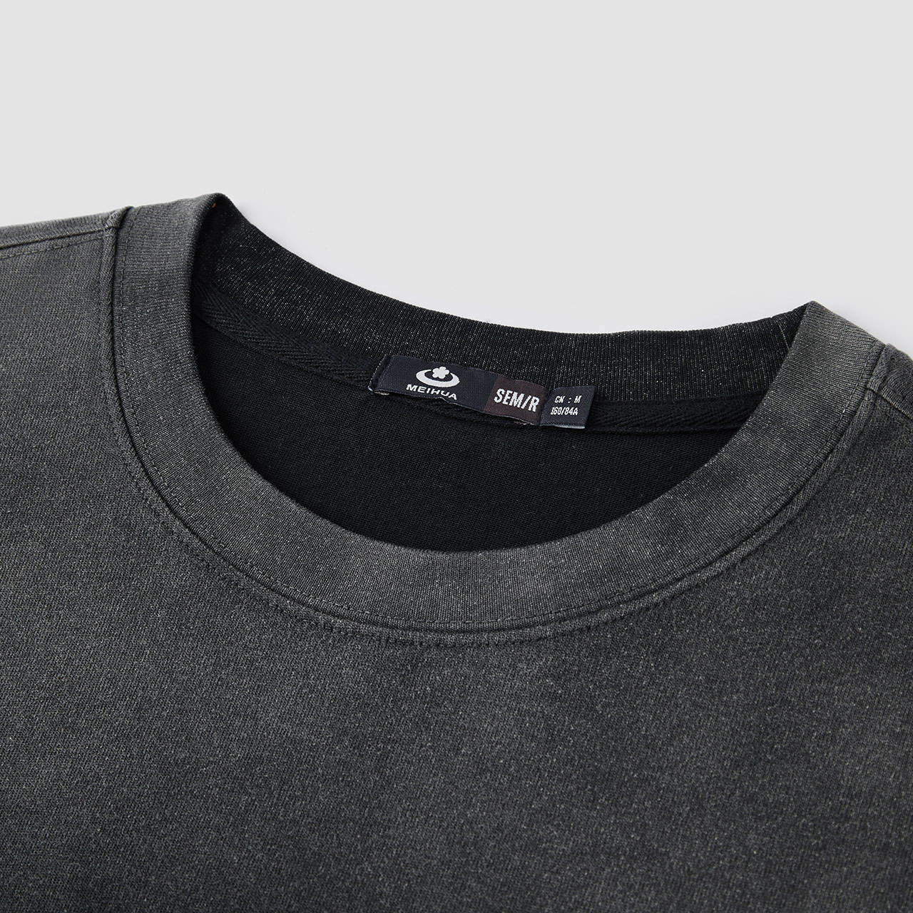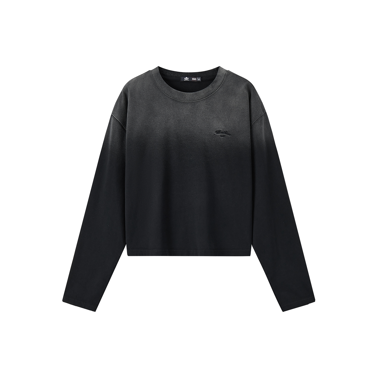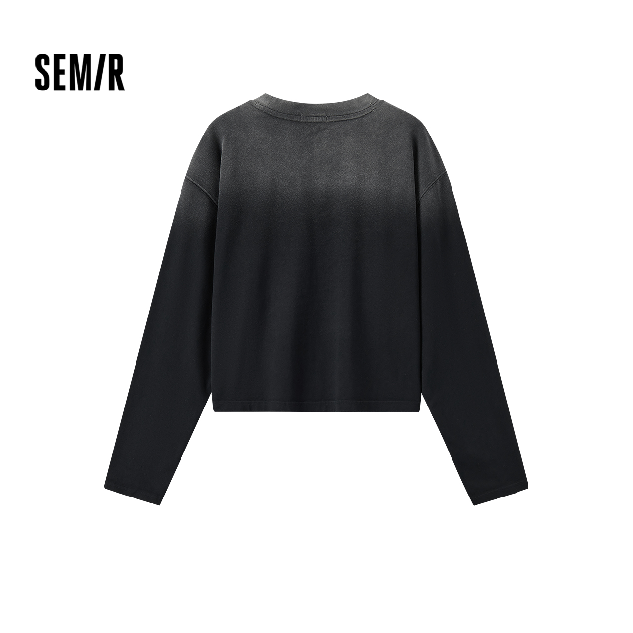秋纯棉衣服宽松 渐变做旧复古新款 森马梅花系列长袖 T恤女短款