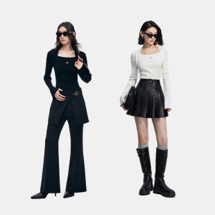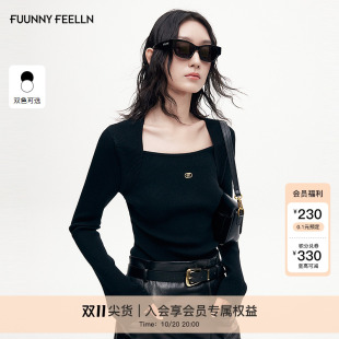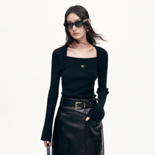 气质喇叭袖 FF仿佛针织衫 法式 新款 复古方领设计感上衣女 2025年秋季
