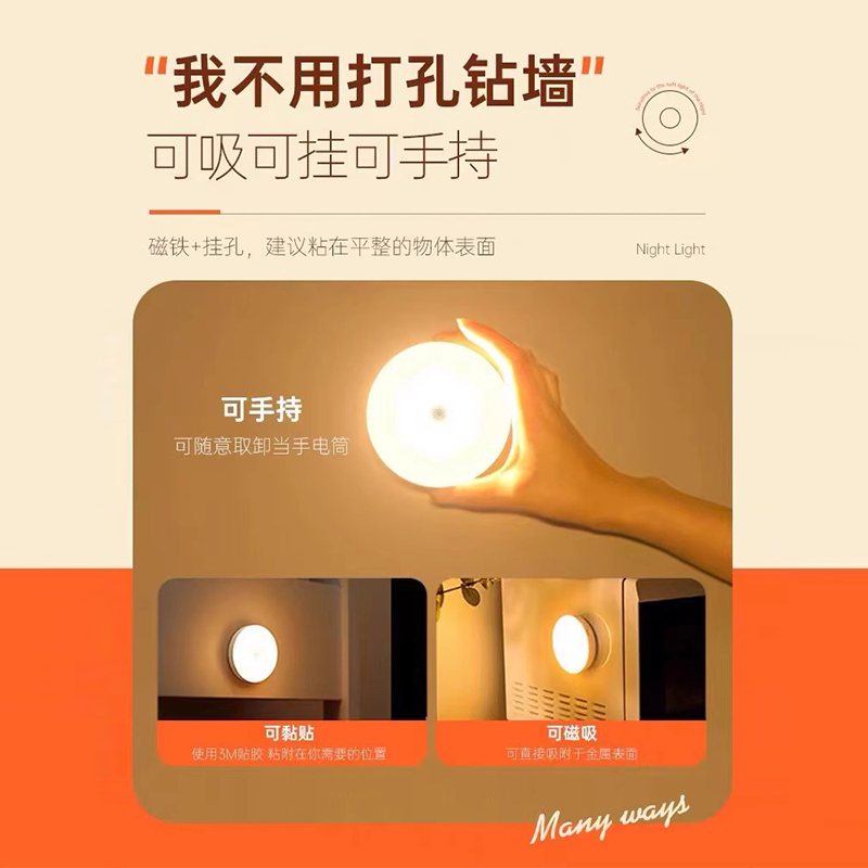 2025新款 人体感应灯夜间自动亮灯家用走廊过道智能声控充电小夜灯