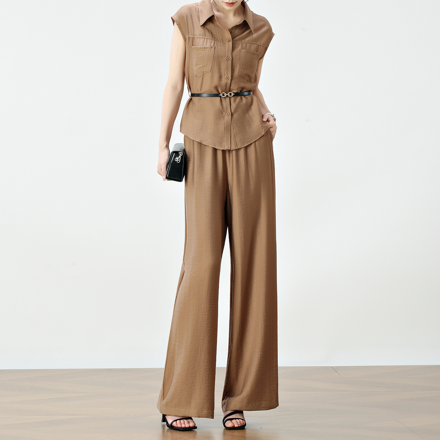爆款 阔腿裤 超火套装 衬衫 两件套气质收腰一整套 女士飞飞袖 2025夏季
