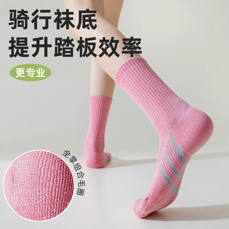 公路车骑行袜男女专业运动跑步羽毛球速干中筒白色黑色毛圈氨纶