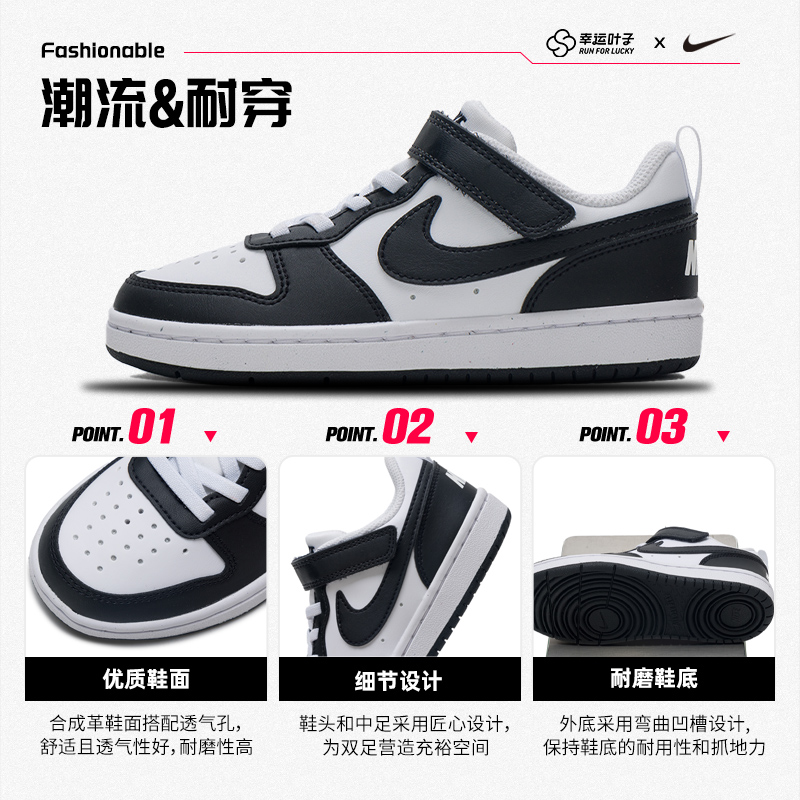休闲板鞋 COURT运动鞋 DV5457 新款 Nike耐克黑白熊猫撞色男女儿童鞋