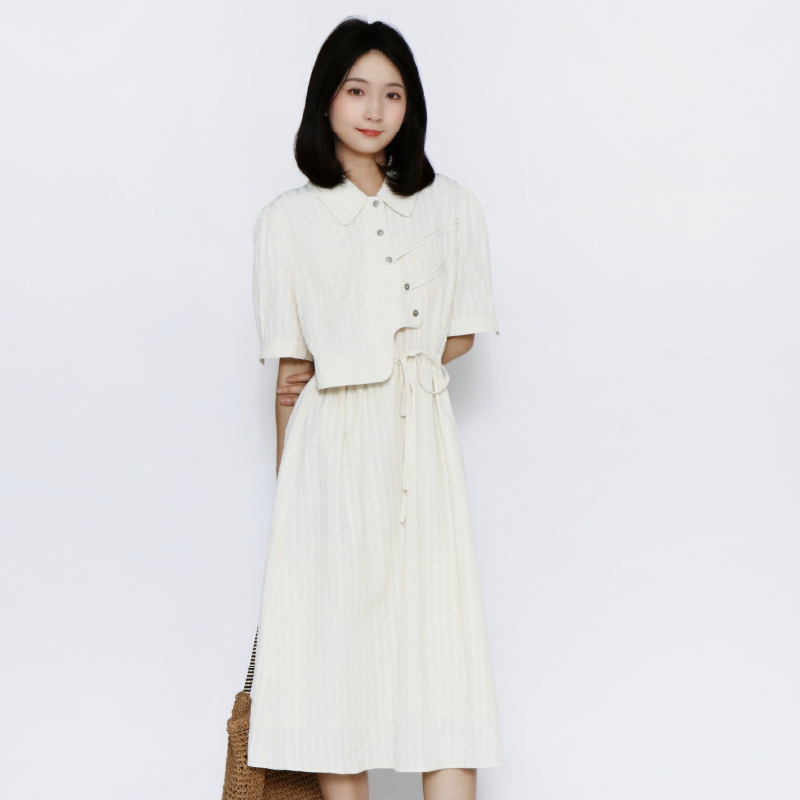 PATAVINITY百搭显瘦松紧腰a字连衣裙女夏季 气质显瘦国风盘扣裙子