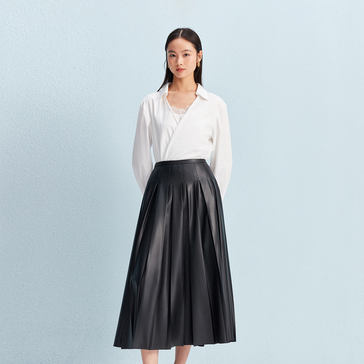 高腰立体压褶PU长裙时尚 新款 百搭气质 Moda半身裙2025秋季 Vero