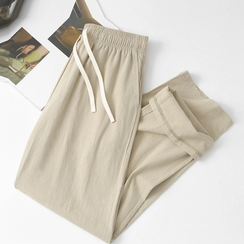 藏青直筒垂感冰丝莱赛尔休闲裤 大码 子薄款 抗皱天丝亚麻裤 男女 夏季
