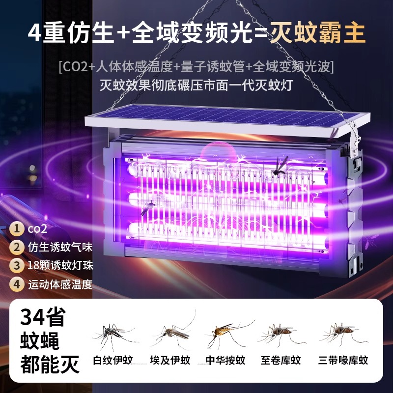 2025新款 太阳能灭蚊灯户外灯庭院花园神器室外强力驱蚊灯系统充电