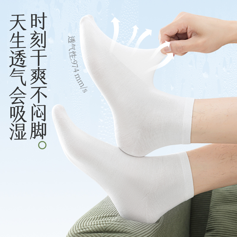 恒源祥诸暨袜子男士 纯棉吸汗防臭运动短袜夏天白色中筒袜男袜 夏季