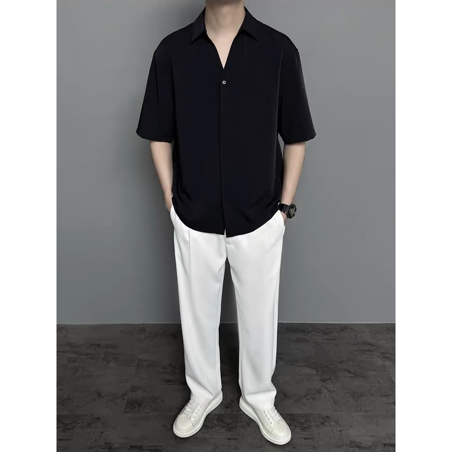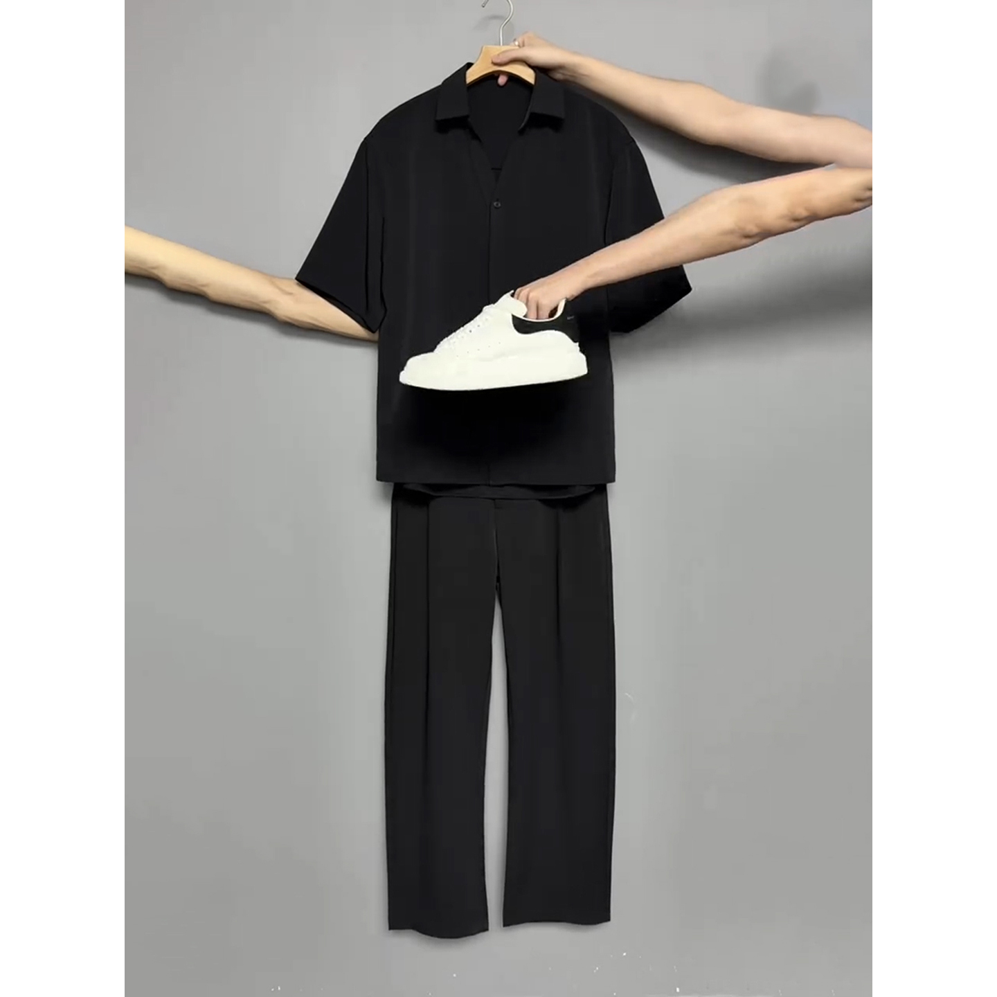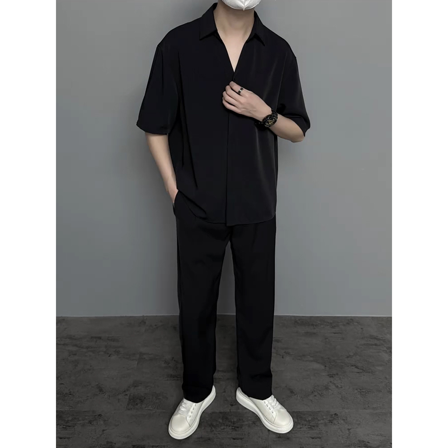 衬衫 套装 垂感西装 轻熟雅痞风男装 冰丝醋酸衬衣 裤 那不勒斯v领短袖