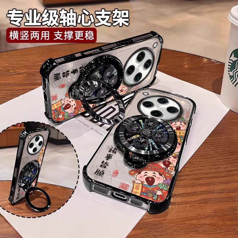 电镀四角适用oppofindx8s 7高级感opp0风生水起透明Ultra全包ins风旋转支架防摔保护套 手机壳女新款