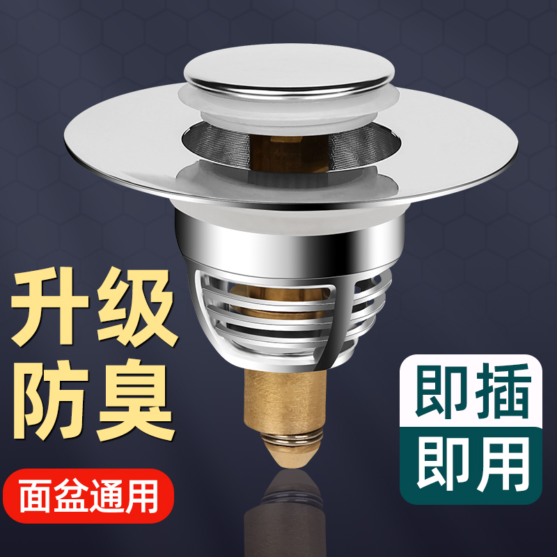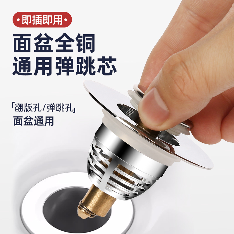 下洗手盆脸池漏水洗塞子板脸盆水器通用管弹跳芯按压巨卖式 翻面盆