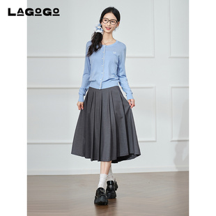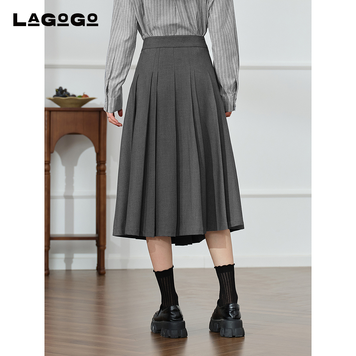 LAGOGO高知感优雅通勤半身裙女拉谷谷2025秋新款 百褶裙OCBB337C81