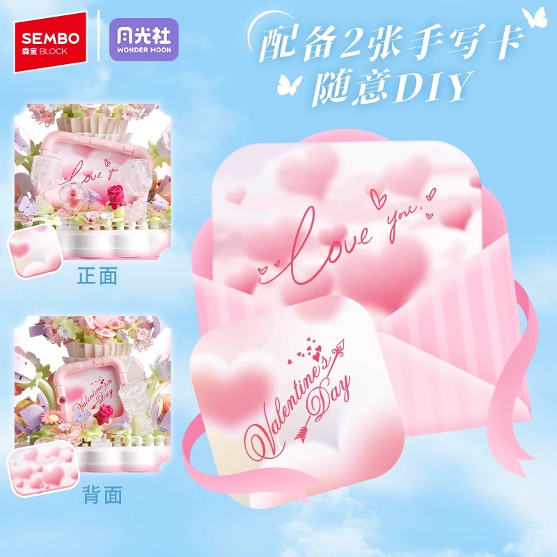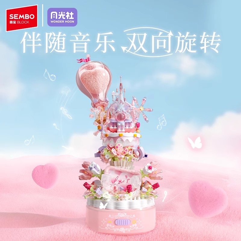 森宝积木告白气球旋转八音盒拼装 积木玩具摆件女生节日礼物音乐盒