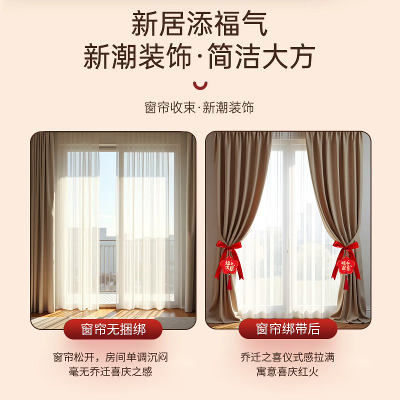 乔迁之喜窗帘装 布置挂件礼物用品 饰绑带新居新房搬家进宅入伙仪式
