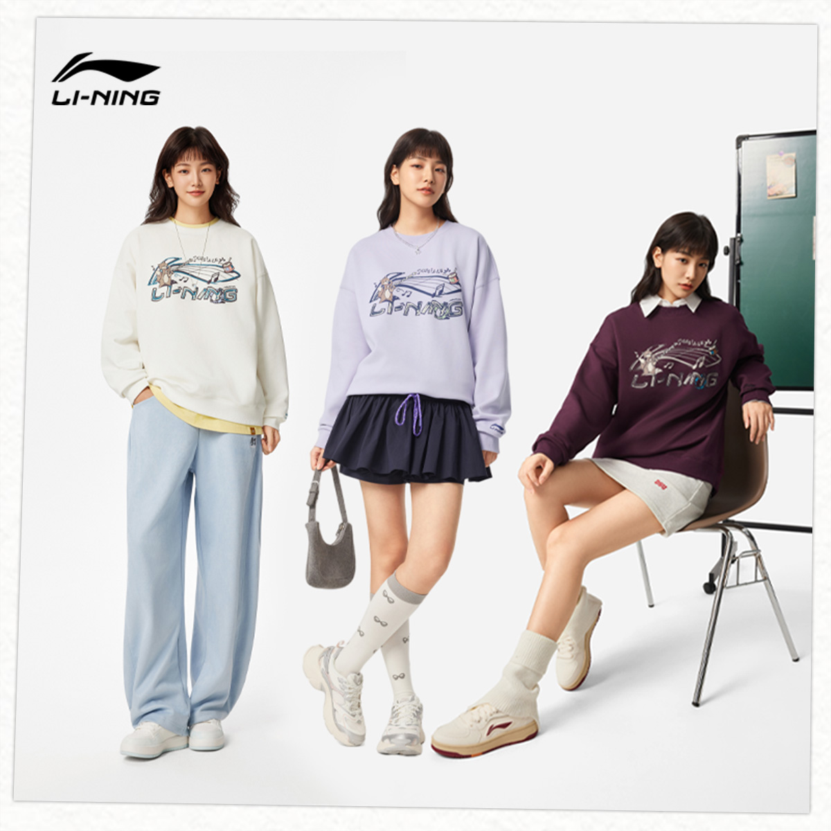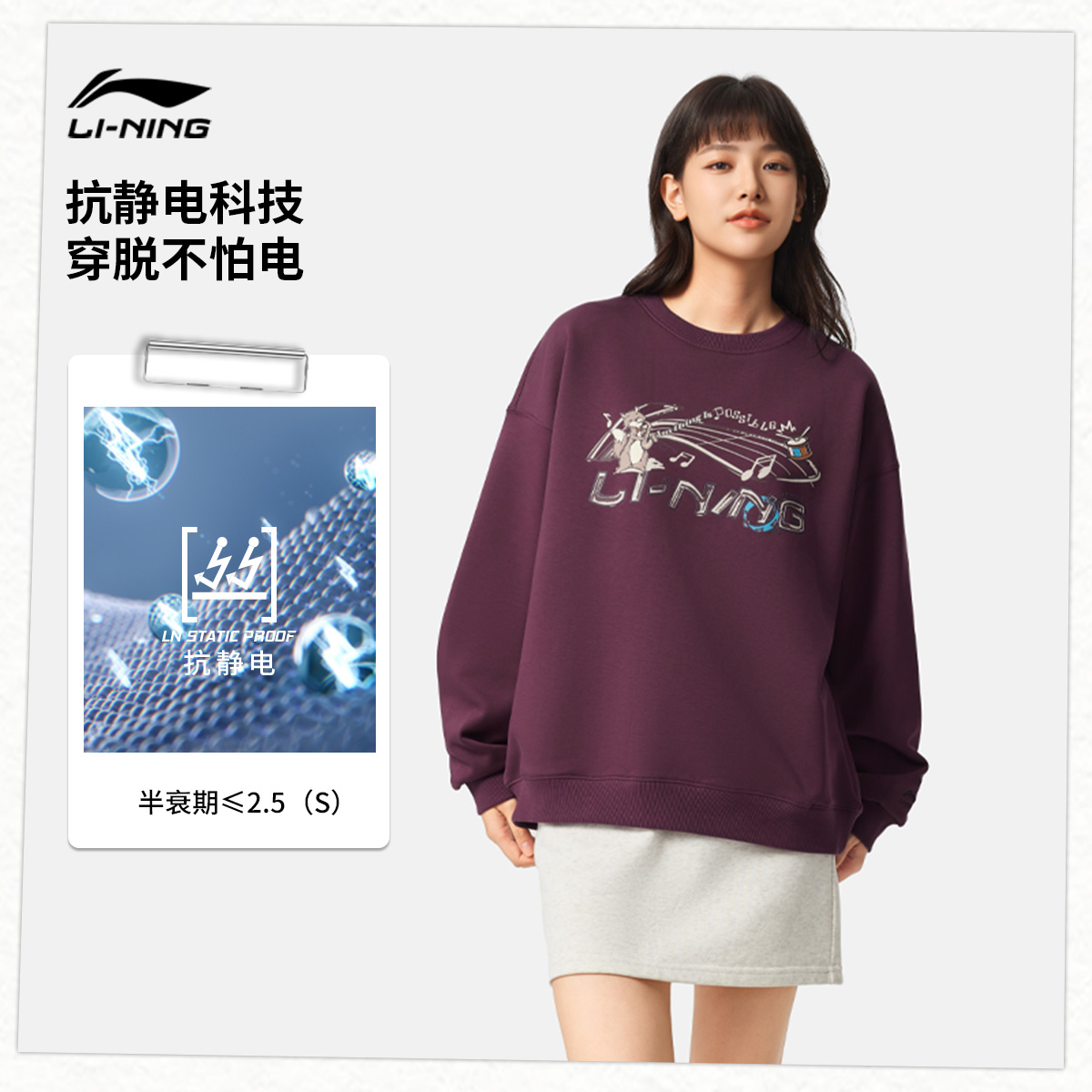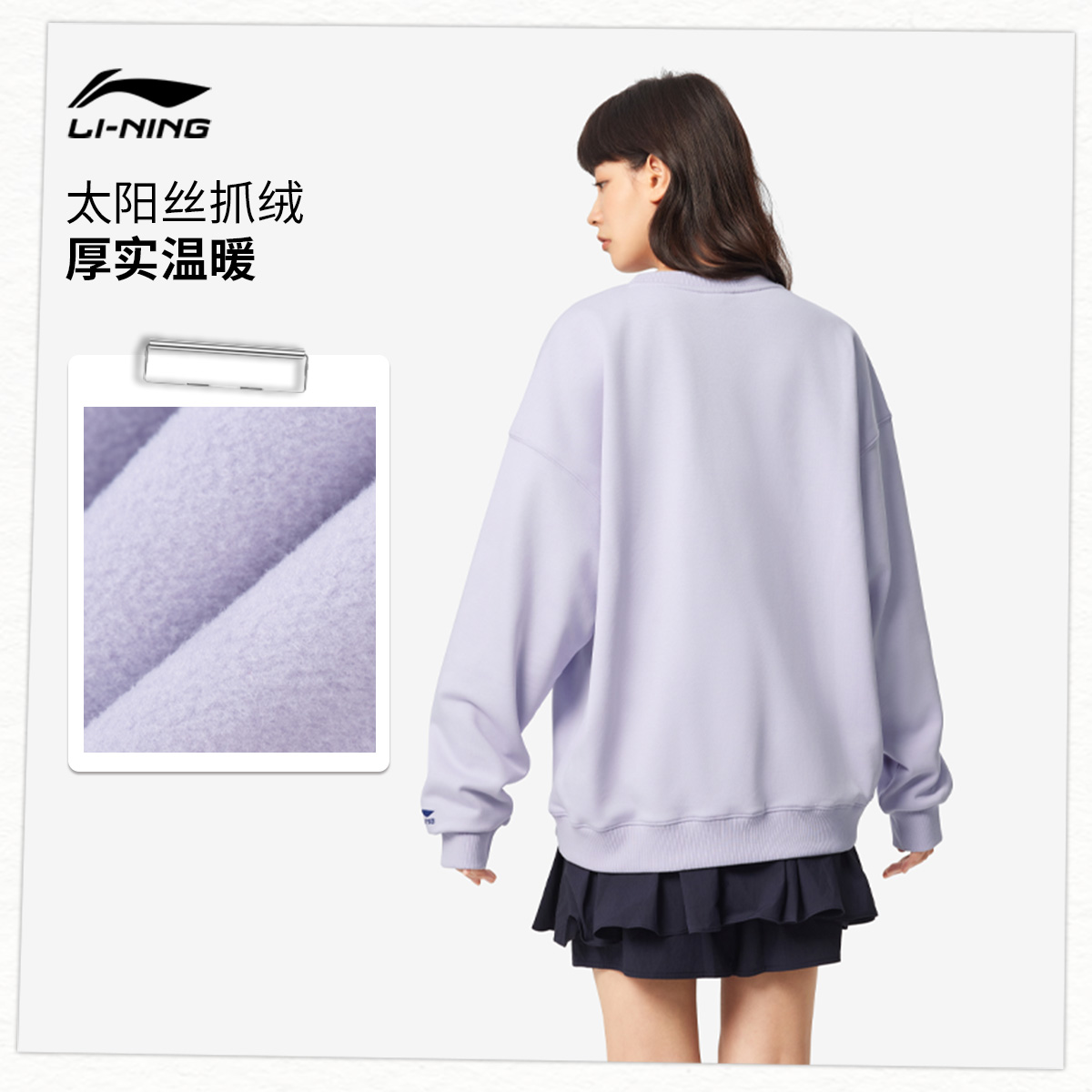 圆领长袖 秋冬新款 李宁卫衣女款 上衣加绒保暖运动服女 双11预售