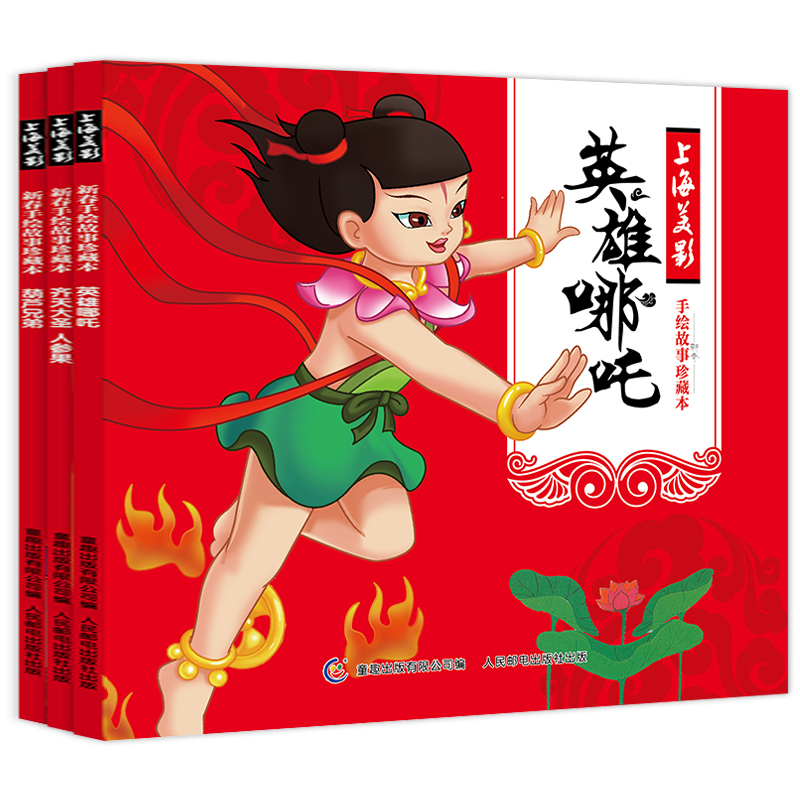 黑猫警长英雄哪吒齐天大圣英雄哪吒连环画正版 上海美影手绘故事珍藏本全套4册 9岁儿童卡通漫画手绘图画故事书