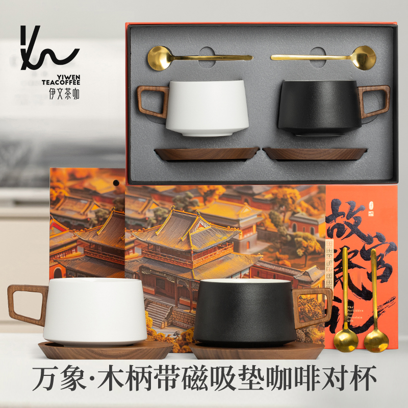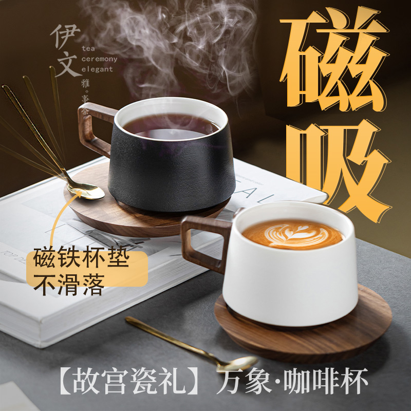 伊文陶瓷咖啡杯碟套装 高档轻奢咖啡杯子情侣对杯水杯新婚中秋礼物