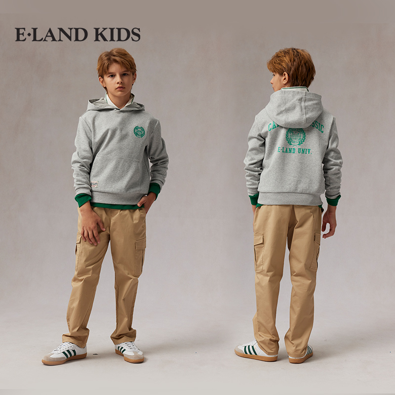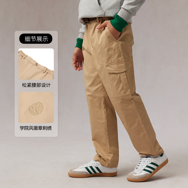 学院风徽章刺绣双贴袋裤 eland 25春秋季 男童休闲裤 子 kids衣恋童装
