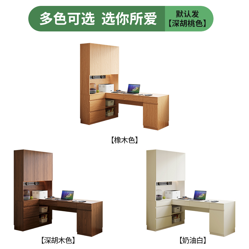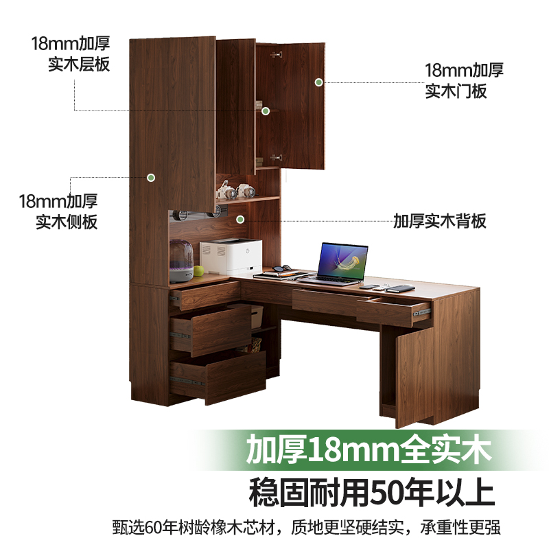 定制橡木书桌书柜一体靠墙转角儿童写字桌全实木书架学习桌电脑桌