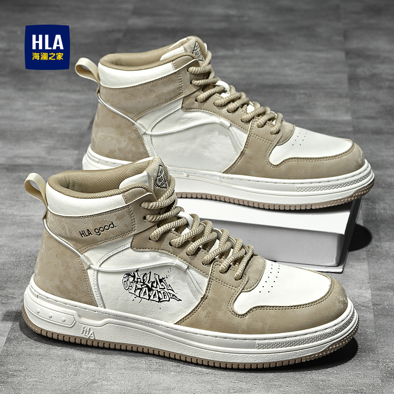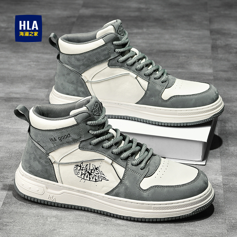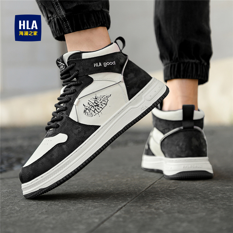运动鞋 高帮休闲鞋 秋冬新款 子学生厚底男鞋 皮面鞋 征服鸿星尔克板鞋
