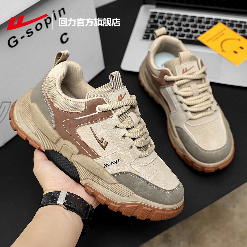皮面休闲运动工作劳保潮软底跑步老爹鞋 2025新款 百搭 爆款 回力男鞋