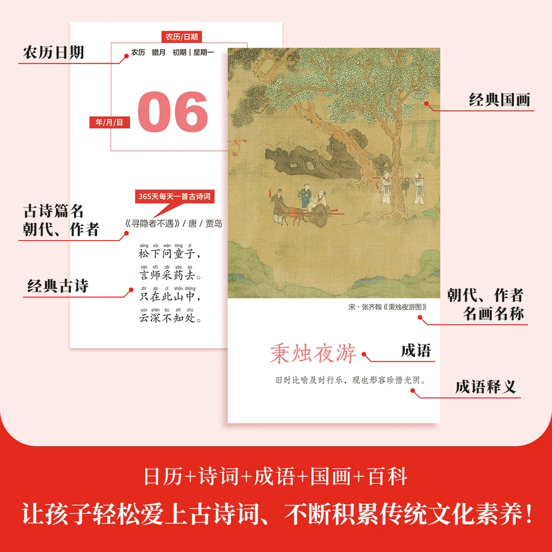 全彩蛇年台历新岁留珍365天公历农历节日日历 诗词精选诗词日历诗画日历台历 抖音同款 诗词日历每日一首古诗词2025年诗词给孩子