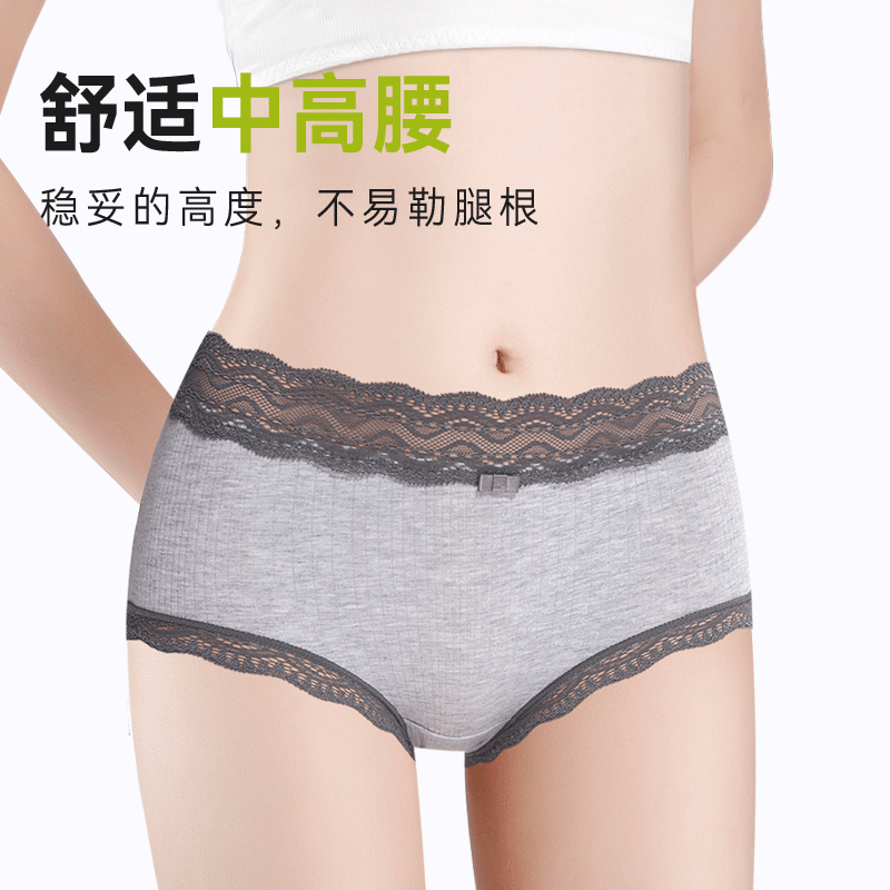 三角裤 蝶安芬无痕内裤 女纯棉抗菌全棉裆中高腰蕾丝性感长绒棉新款