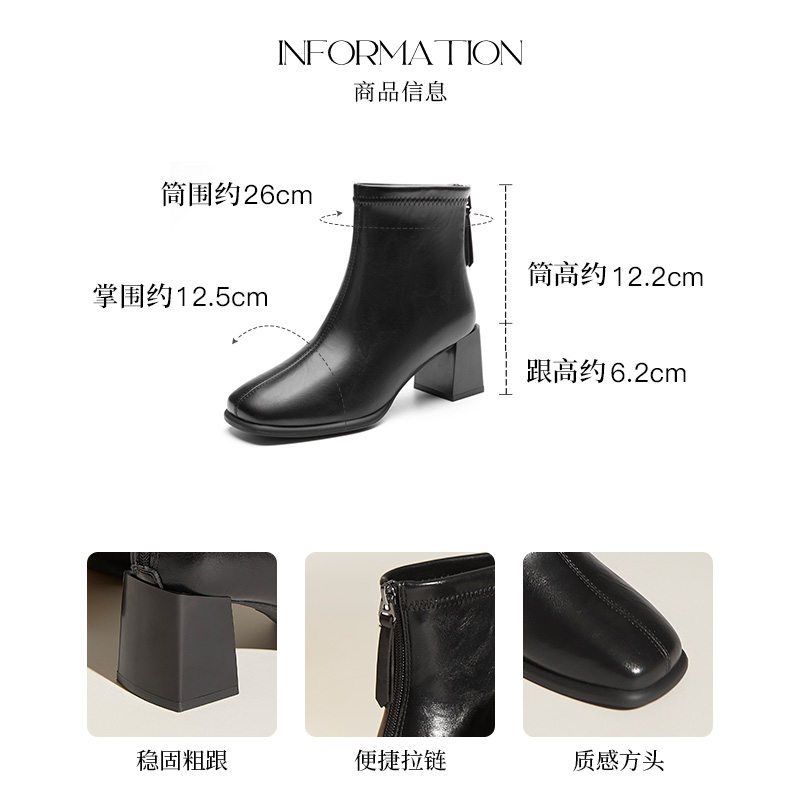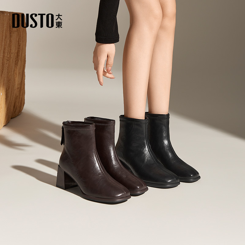 新款 2025冬季 休闲粗跟高跟后拉链方头D0653 靴女鞋 大东时装