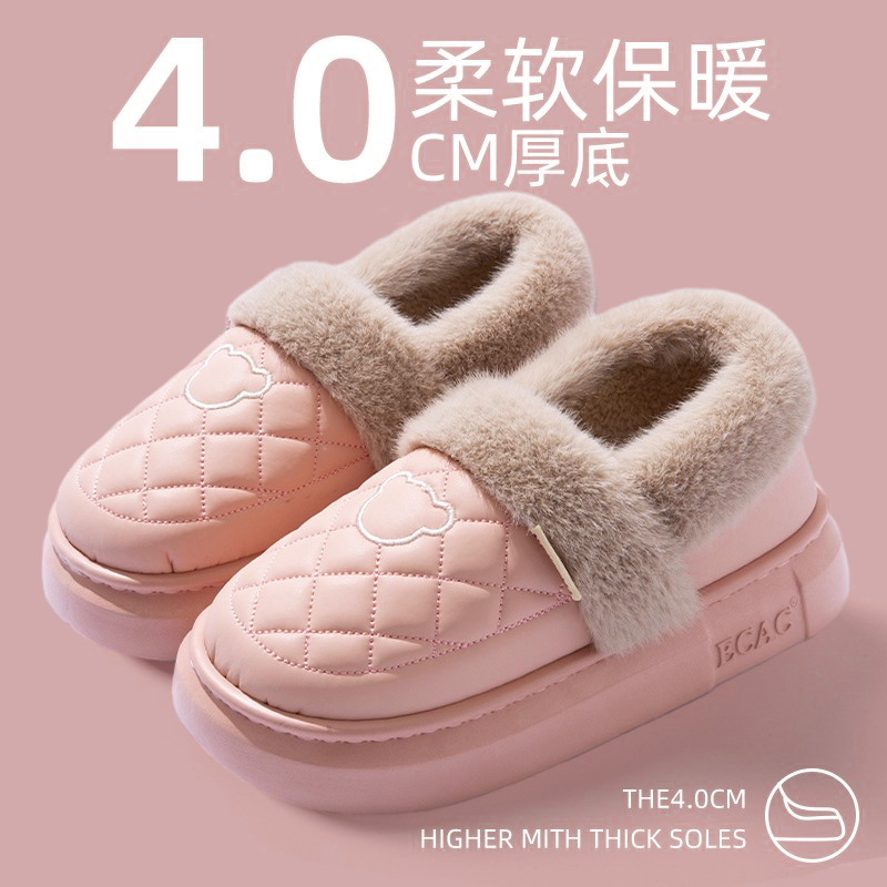女士冬季 防水棉鞋 室内居家保暖2024新款 包跟女款 厚底毛毛鞋 棉拖鞋
