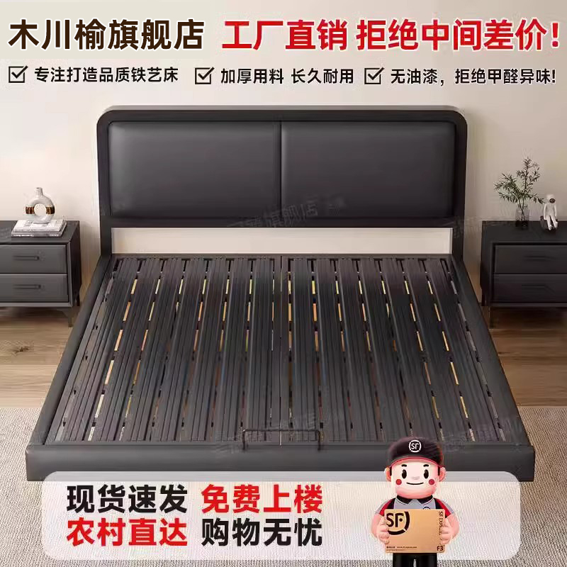床铁艺双人床1.8米家用新款 铁架床简约现代1.5米出租房单人钢木床