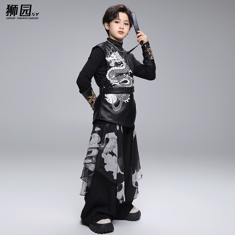 街舞儿童潮服嘻哈国潮套装 旦hiphop中国风表演出服男童 女孩少儿元