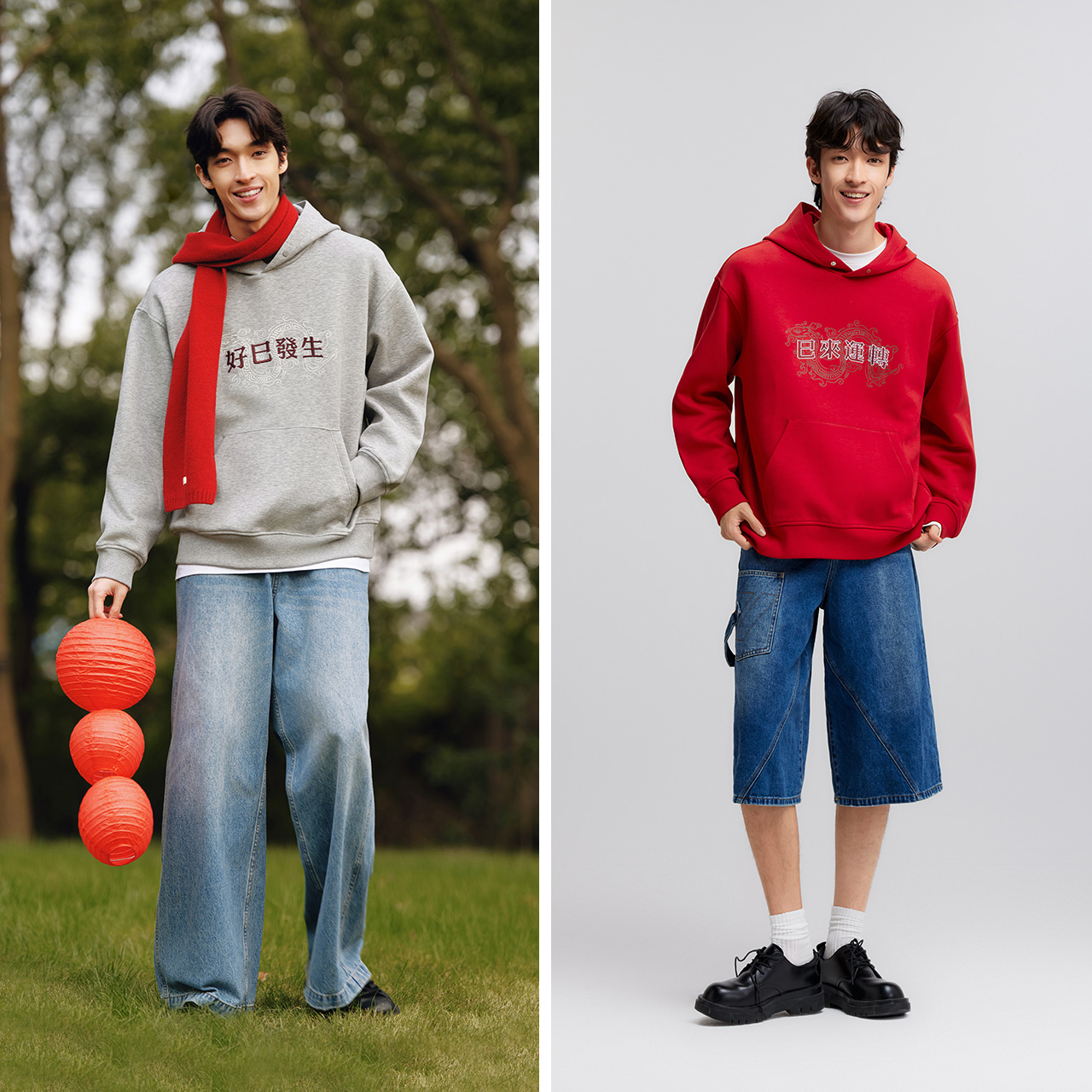 休闲上衣F 卫衣男女宽松落肩礼盒礼袋款 2025秋冬新款 男装