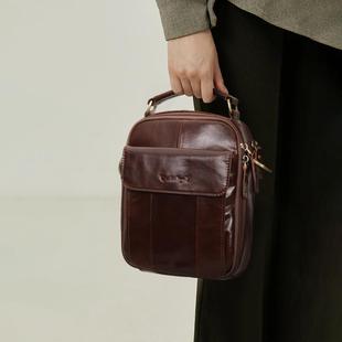 斜挎包男士 油蜡牛皮欧美复古商务单肩包旅行便携休闲小包 2024新款
