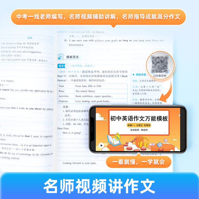 2025版 作业帮初中英语作文万能模板七八九年级精选名校高分范文作文素材专项训练初一二三写作思路点拨技巧提升视频讲解思维导图