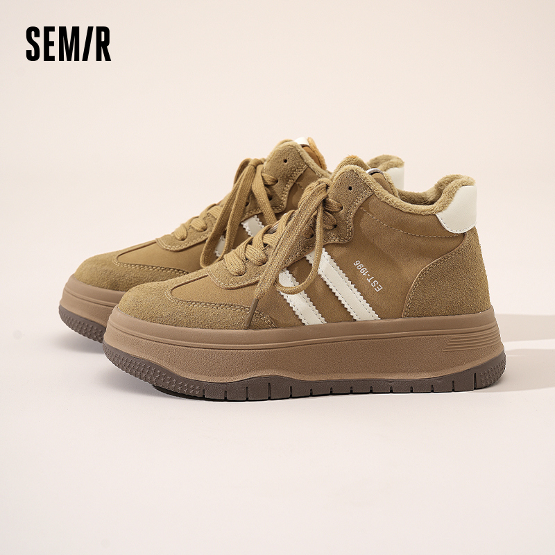 高帮鞋 休闲运动加绒二棉鞋 女2025新款 厚底板鞋 子 秋冬季 Semir女鞋