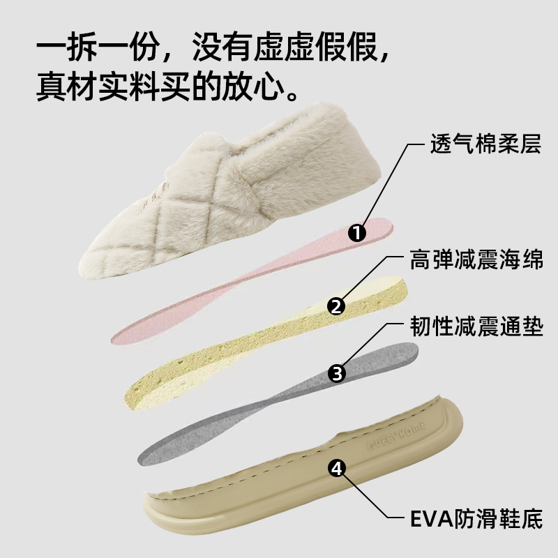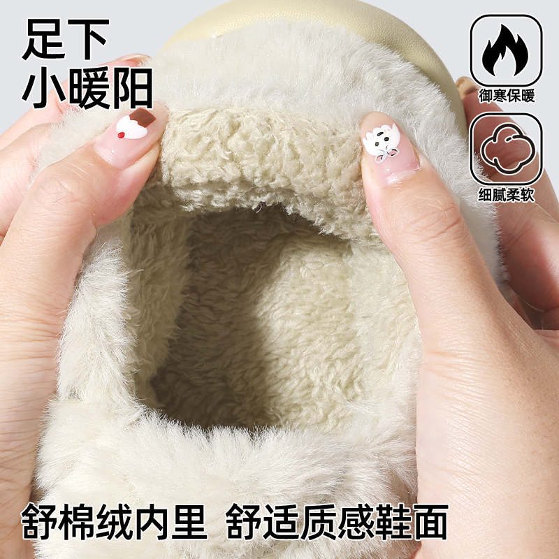 女款 棉拖鞋 厚底毛绒带后跟棉鞋 包跟家居室内2024新款 外穿 女士冬季