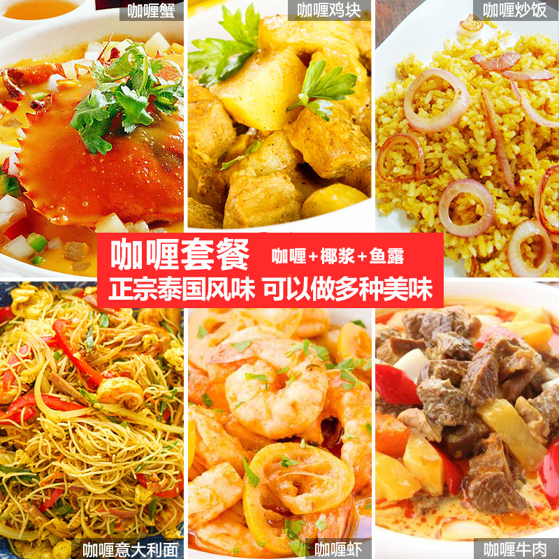 泰国丽尔泰黄红青咖喱酱冬阴功汤组合火锅底料虾蟹鸡肉牛肉调味品