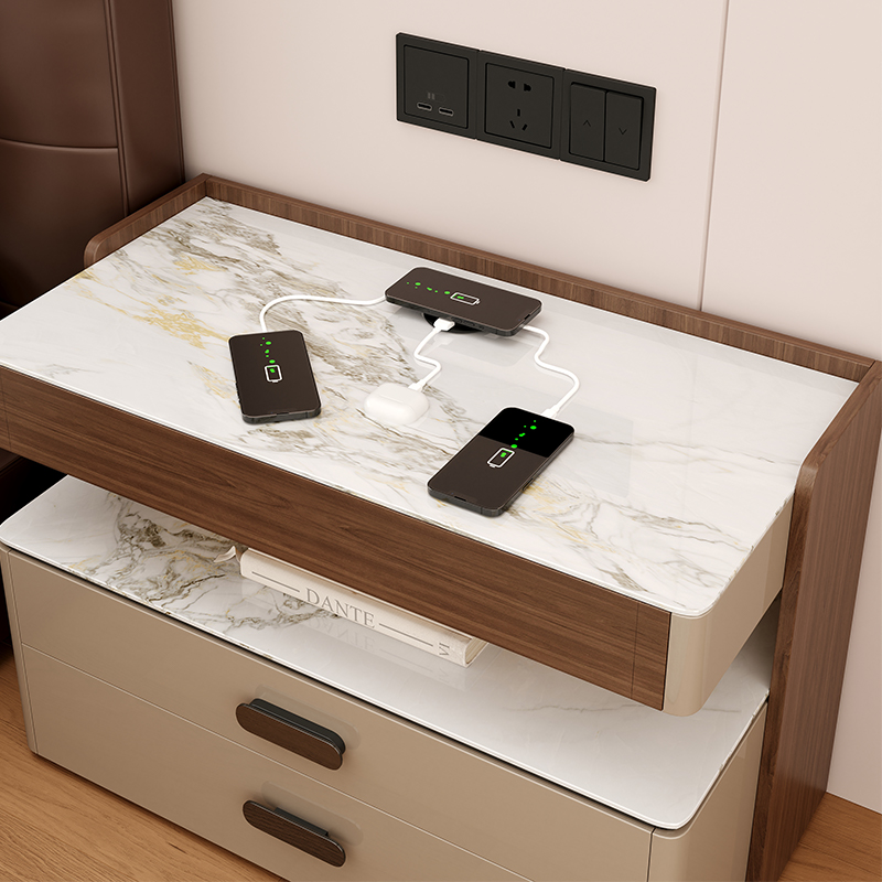 大尺寸床头柜卧室轻奢高级感简约智能可充电实木带锁落地灯床边柜