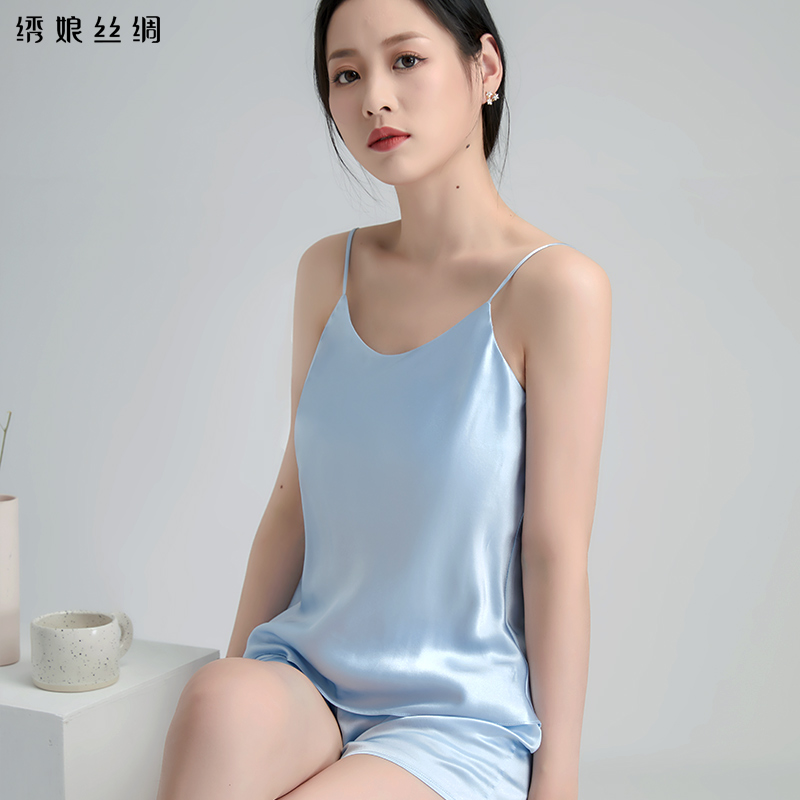 绣娘丝绸礼盒装 两件套100%桑蚕丝背心睡衣冰丝吊带裙 真丝吊带女款