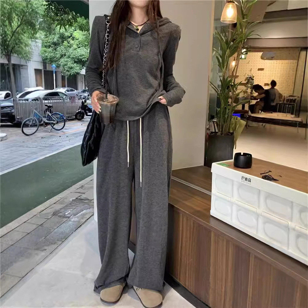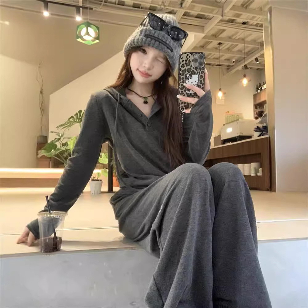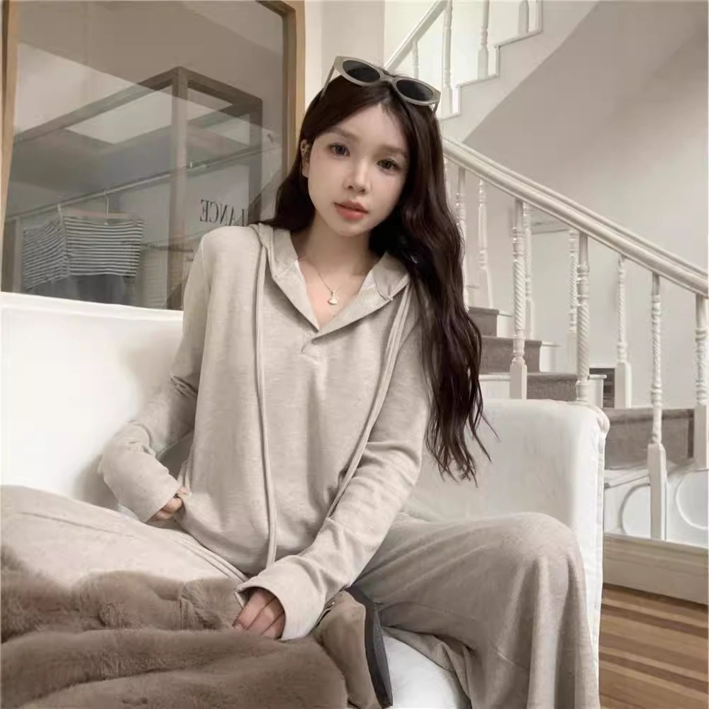 时尚 68小众高货韩版 女秋季 T恤阔腿休闲长裤 新 穿搭慵懒风连帽长袖