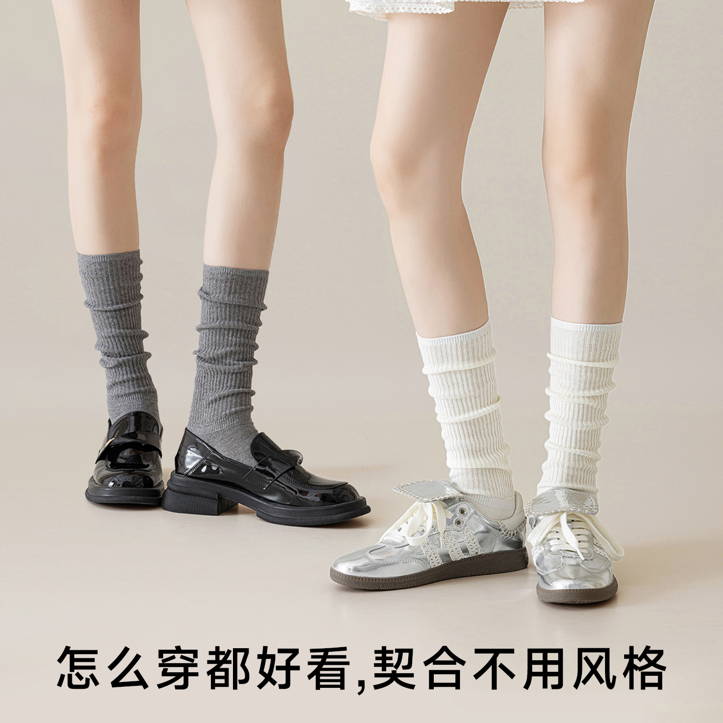堆堆袜长筒袜女款 长袜子配长靴小腿袜jk白色纯棉靴子春秋羊毛棉袜