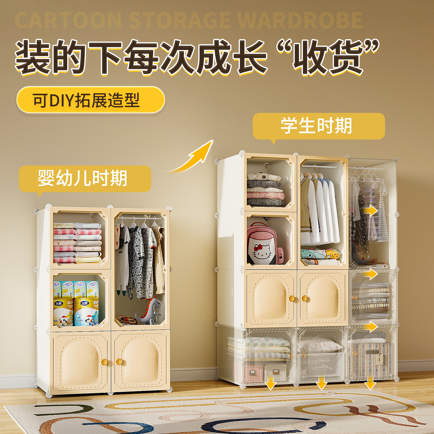 婴儿衣柜儿童衣服卧室家用储物箱小衣橱塑料简易置物宝宝收纳柜子